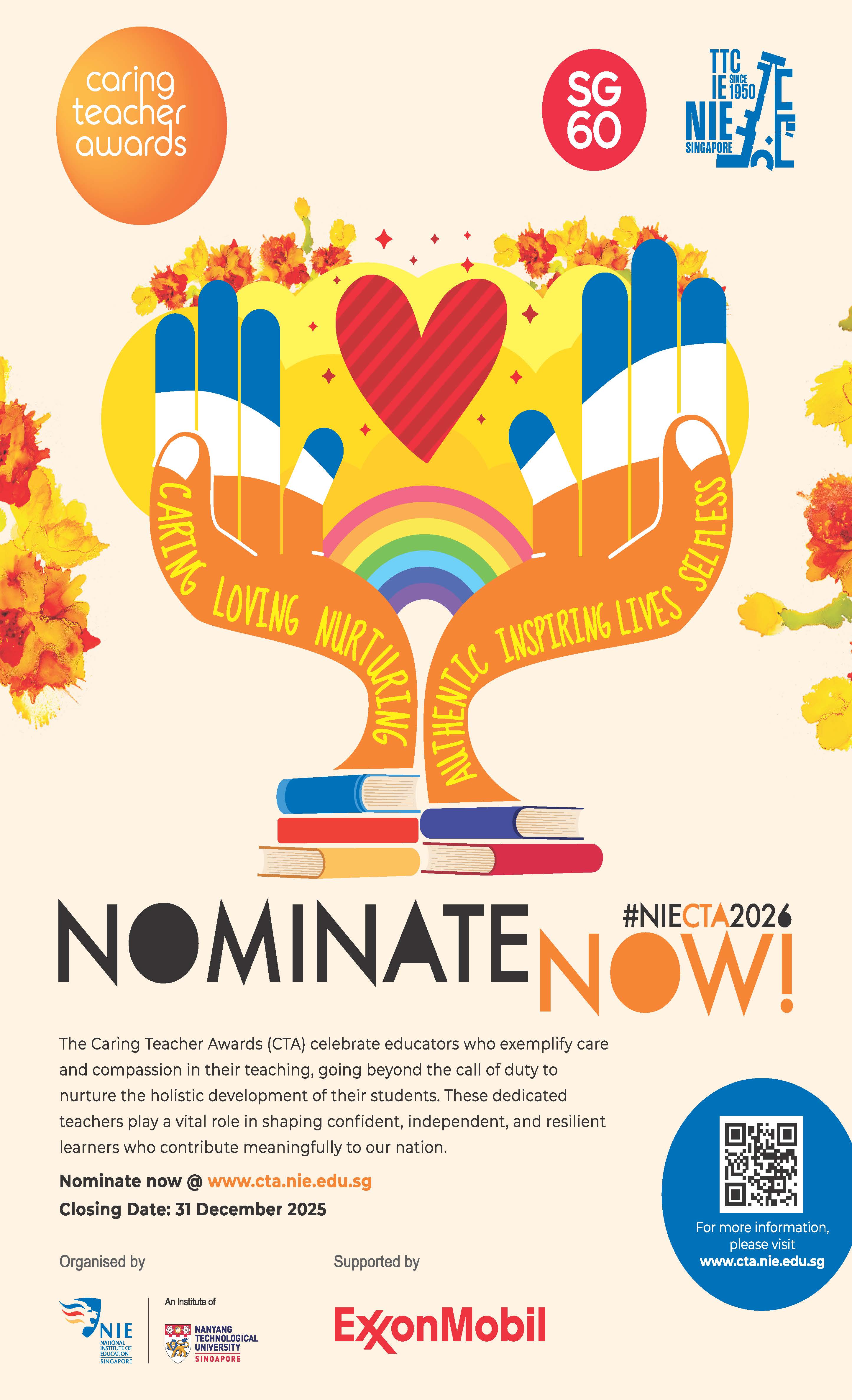 The Caring Teacher Awards (CTA) aims to acknowledge teachers in our schools who go beyond the call of duty, nurturing the holistic development of their students and ensuring their charges grow up to be confident, independent and resilient learners for our nation.